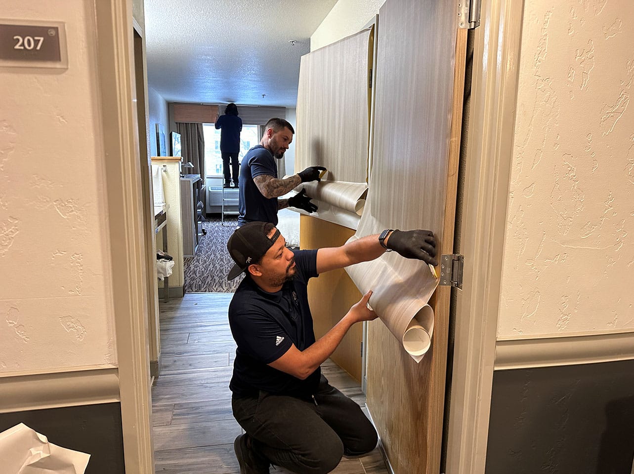 Belbien Architectural film is ideal for wrapping elevators, hotel doors, cabinetry, furniture, and more.