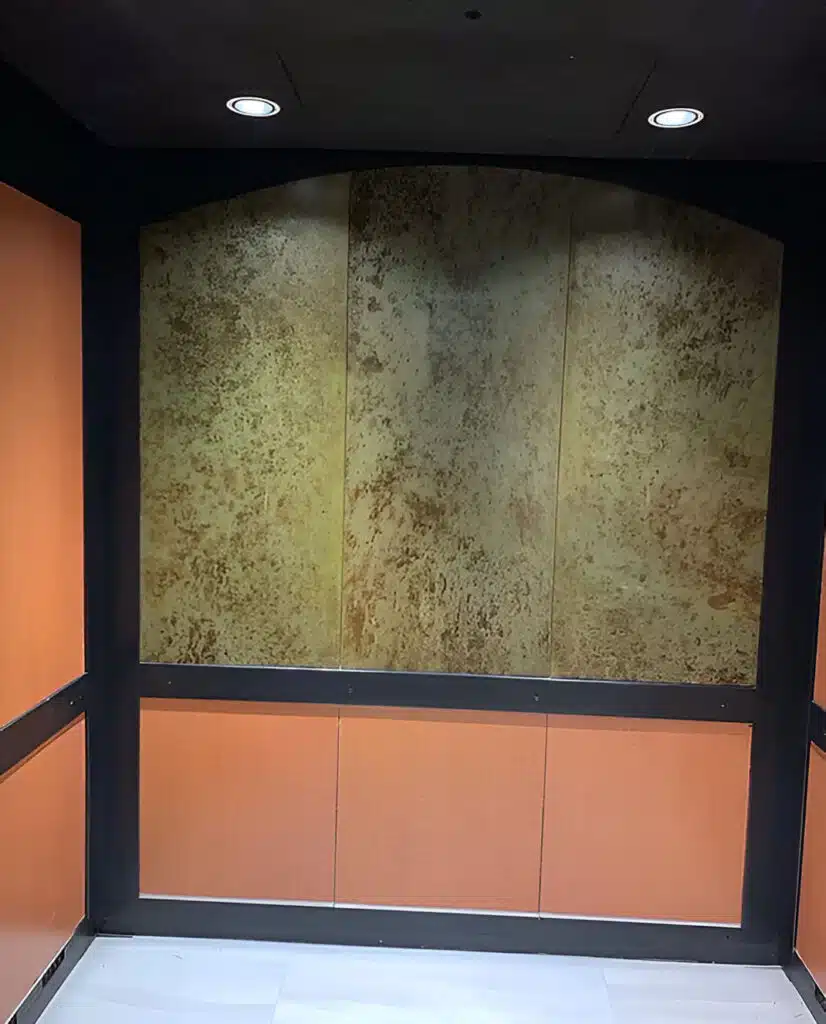The stainless steel elevator cab did not fit the restaurants elegant esthetics. Rather than traditional elevator cab remodeling, the Mila chose Resurface Wraps to remodel the elevator cabs with architectural wrap.