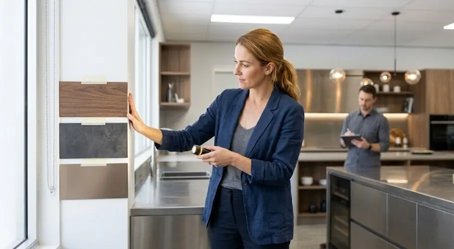 This is especially true for textured finishes. A wood grain wrap, for example, might look warm and rich under soft downlights but appear dull and washed out under harsh fluorescent lights. The wrap hasn’t changed. The light has. That’s the core thing to understand before you commit to any colour or finish for your space.