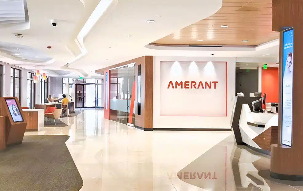 AMERANT BANK Office in Coral Gables, Florida. 3M DI-NOC was utilized in this renovation project to create a look of real wood and a calm aesthetic.